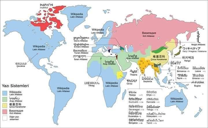 Əlifbaların xəritəsi: Latın, ərəb, kiril... (FOTO)