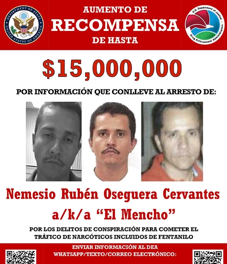 Nemesio Oseqera Servantes Meksika və ABŞ Narkotiklə Mübarizə İdarələrinin (DEA) ən çox axtarılan şəxslər siyahısında birinci yerdə idi. ABŞ rəsmiləri onun tutulması və ya yerinin bildirilməsi üçün 15 milyon dollara qədər mükafat vəd edirdi.